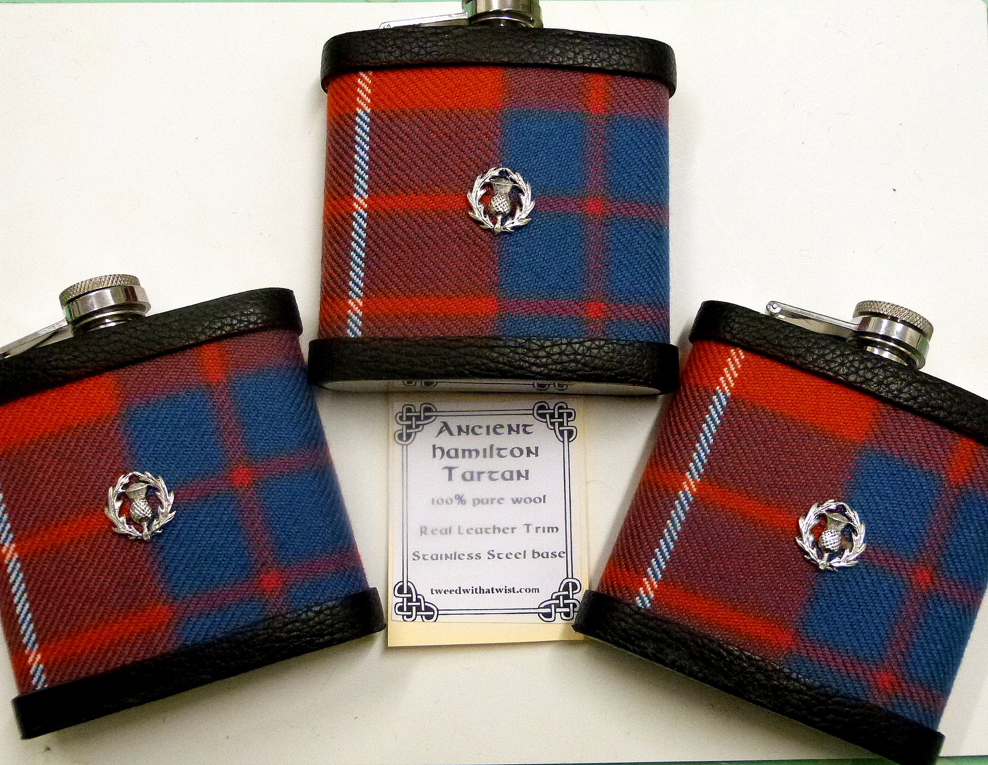 Each set of flasks will be made to order to your specification, and custom tartan will be ordered from weavers, so please allow 14-21 days for delivery